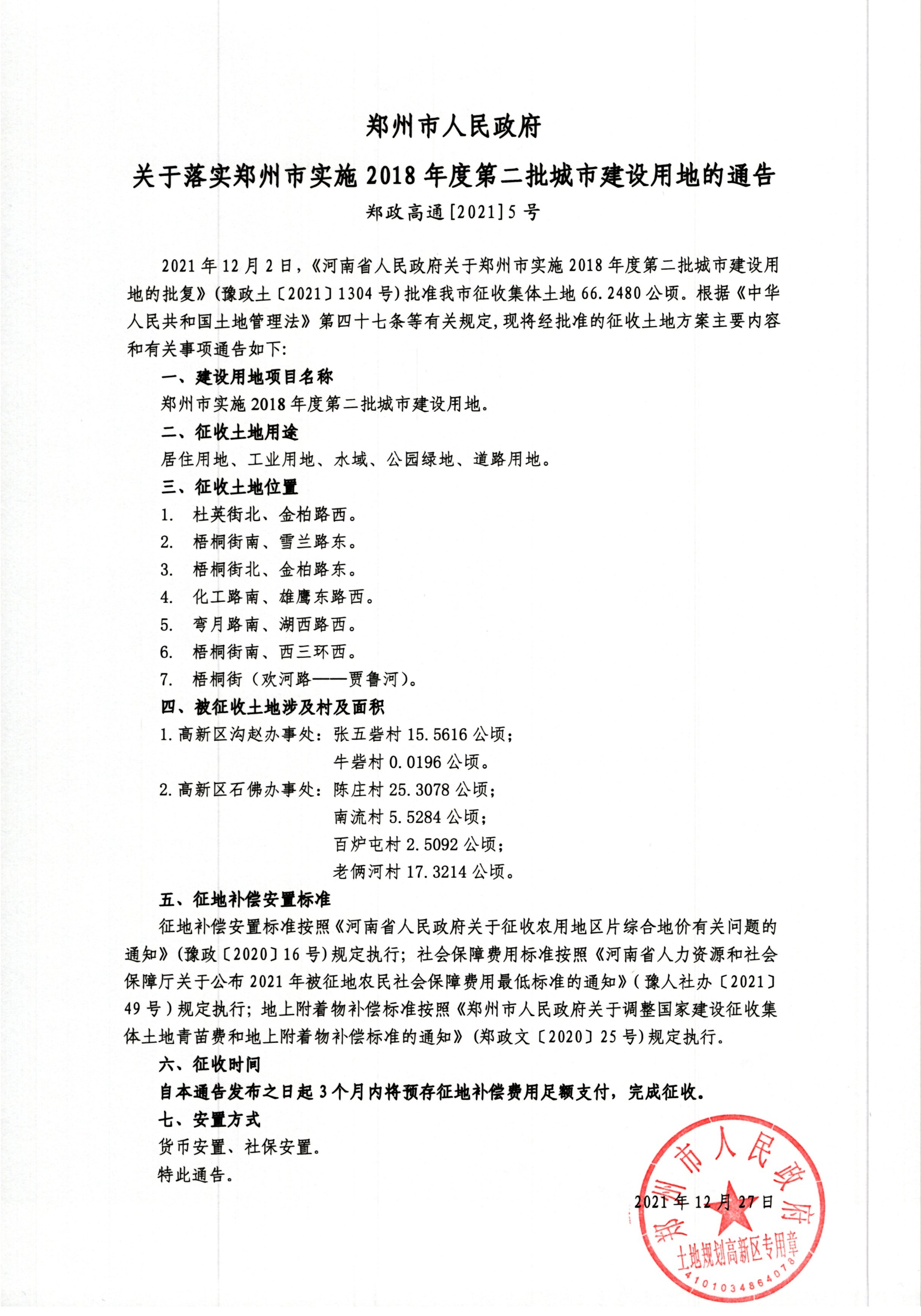 郑州一中高新实验小学建设项目征地相关证明材料