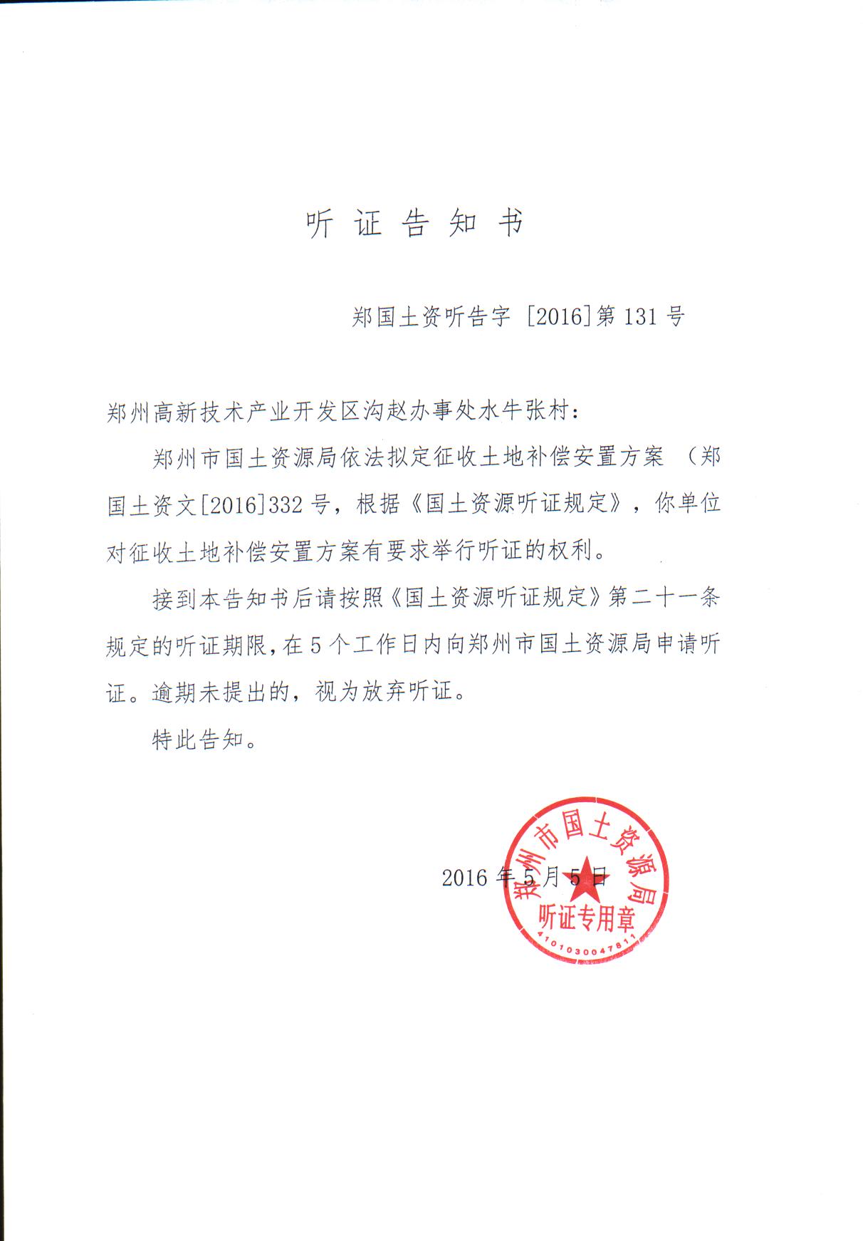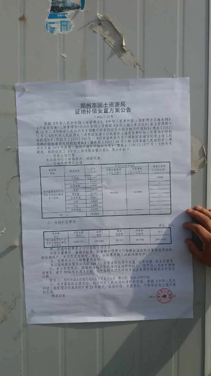 郑州高新区第四中学建设项目征地相关证明材料