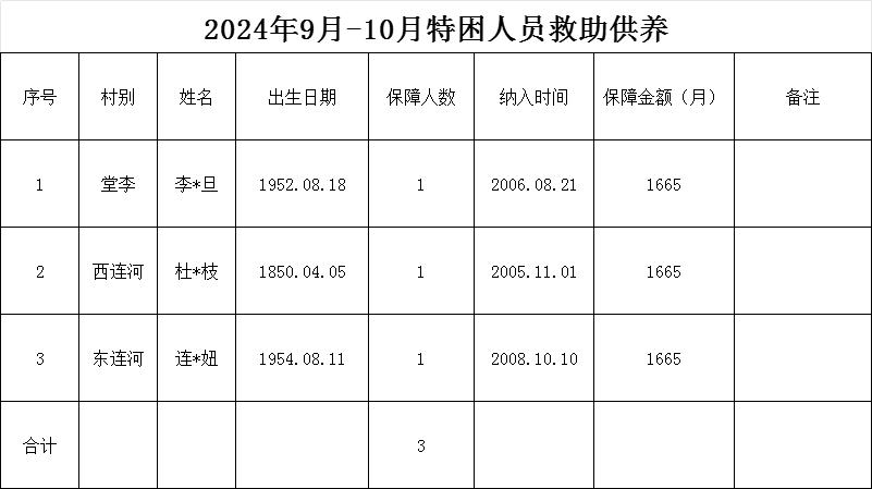 2024年9月--10月特困人员救助供养