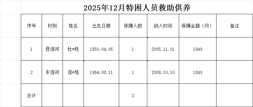 2025年12月特困人员救助供养