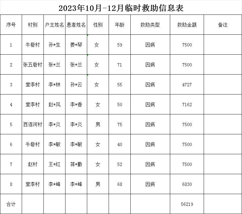 2023年10月-12月临时救助信息表
