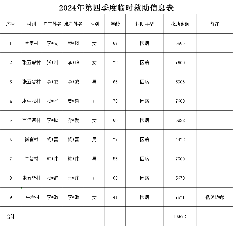 2024年第四季度临时救助信息表