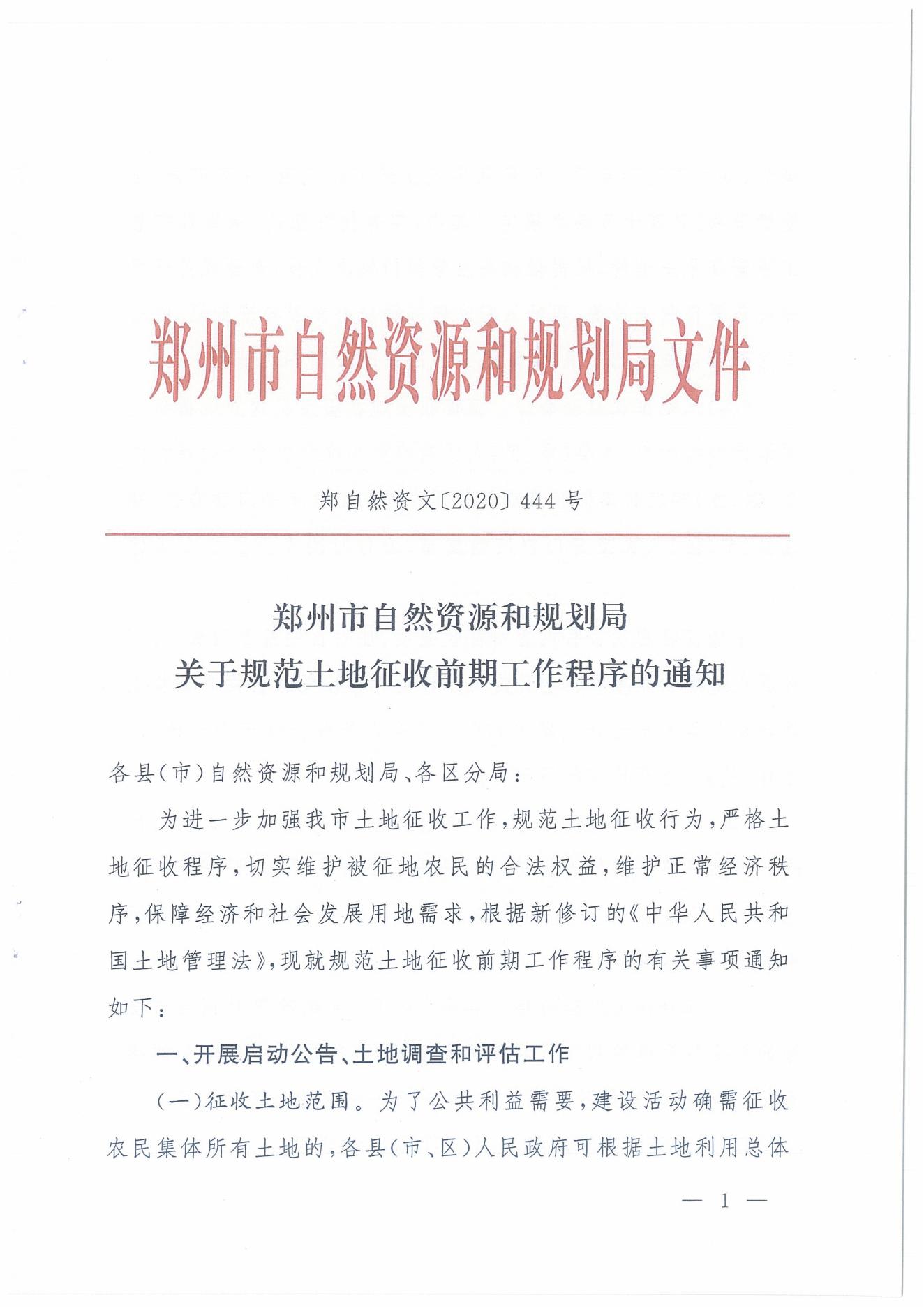 郑州市自然资源和规划局关于规范土地征收前期工作程序的通知