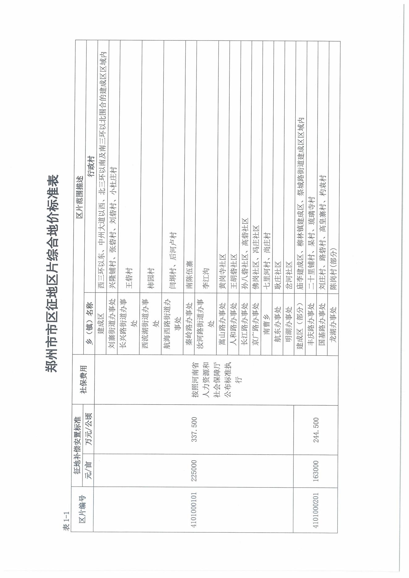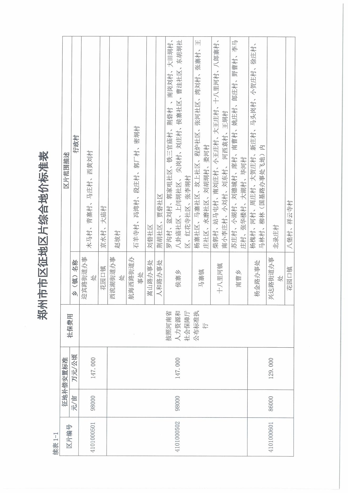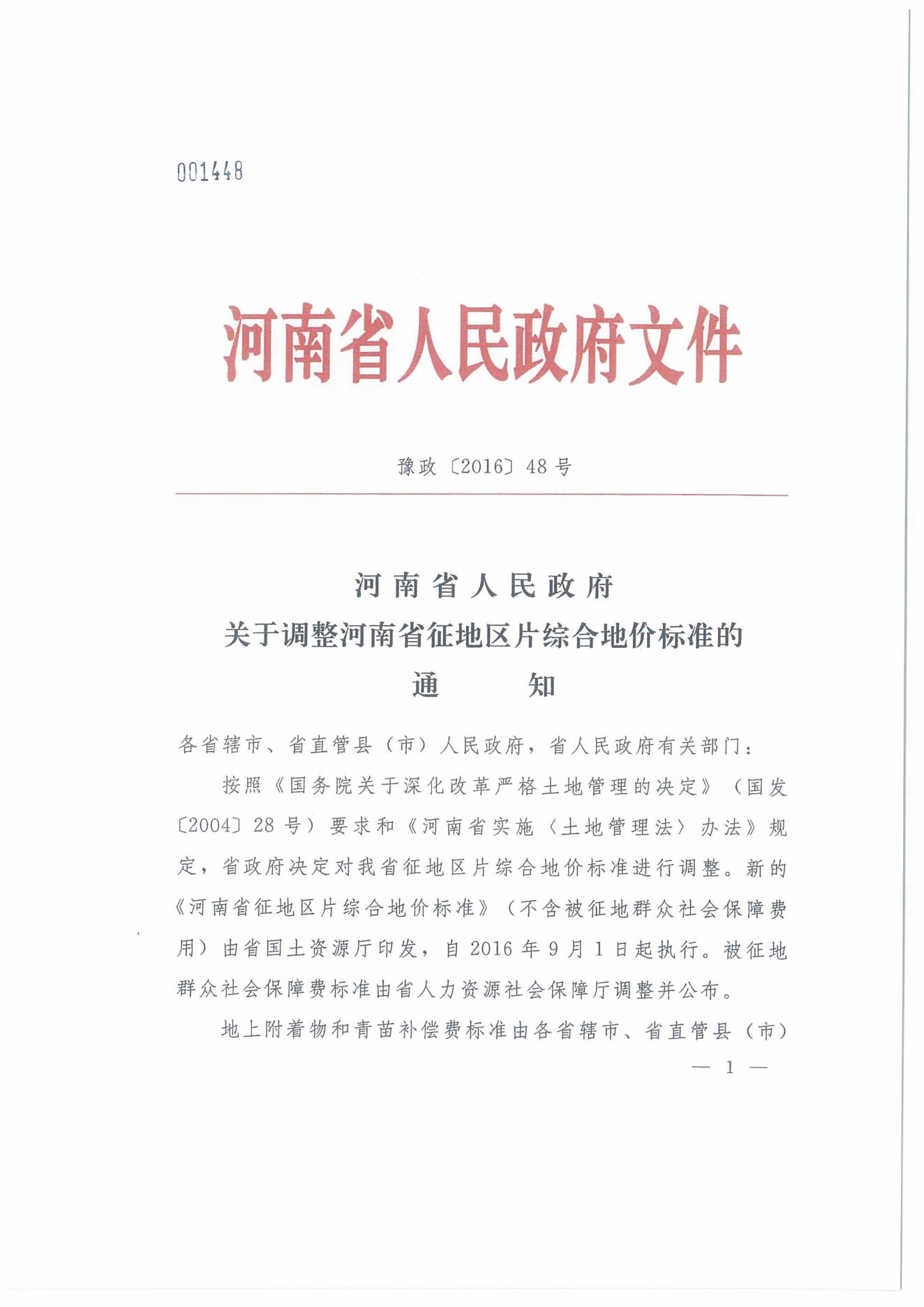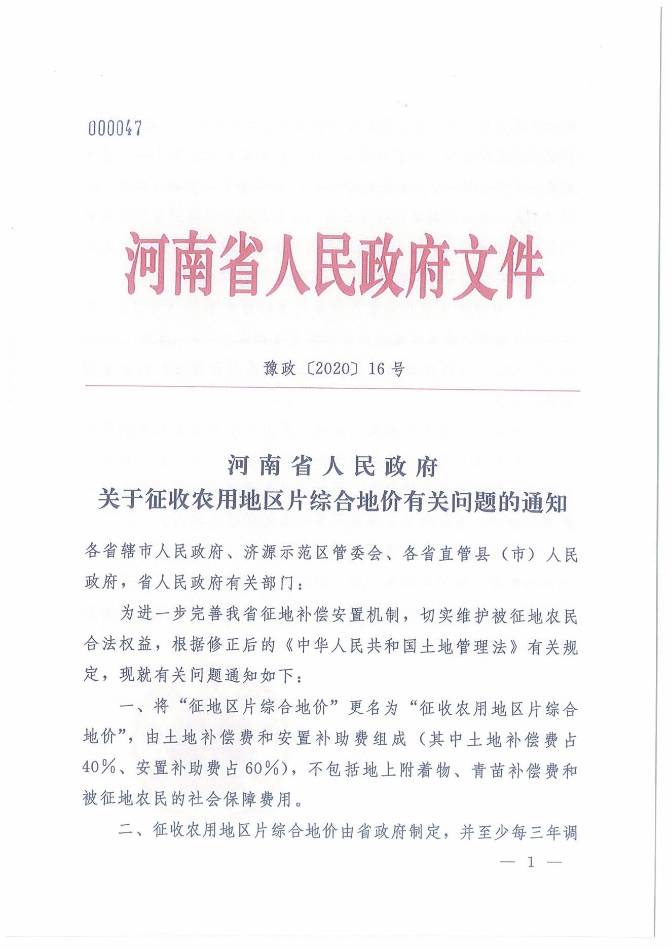 河南省人民政府关于农用地区片综合地价有关问题的通知