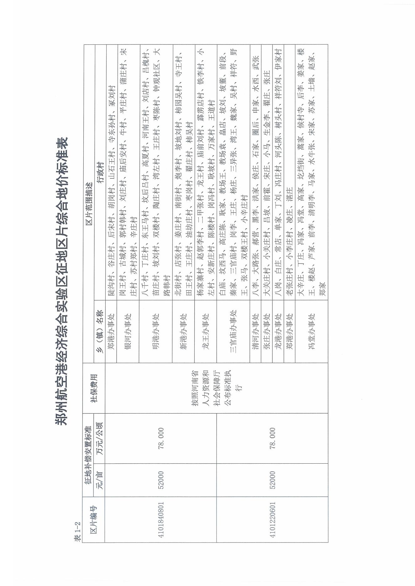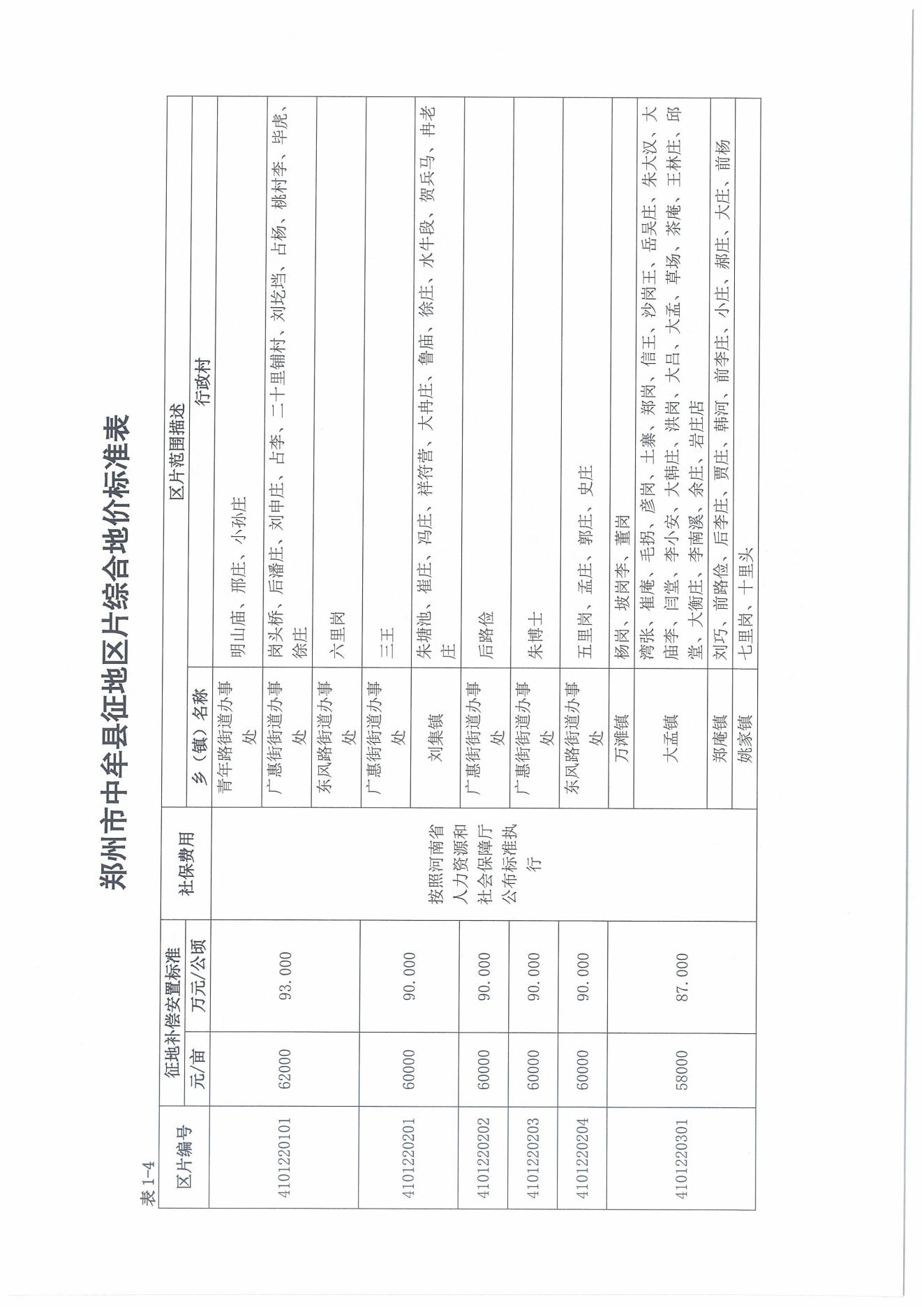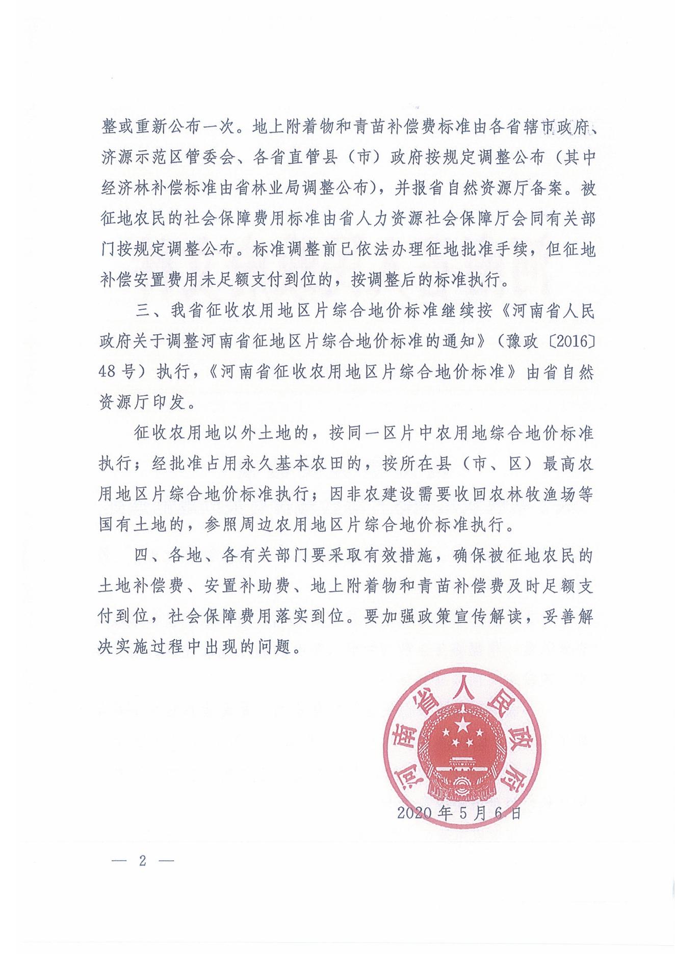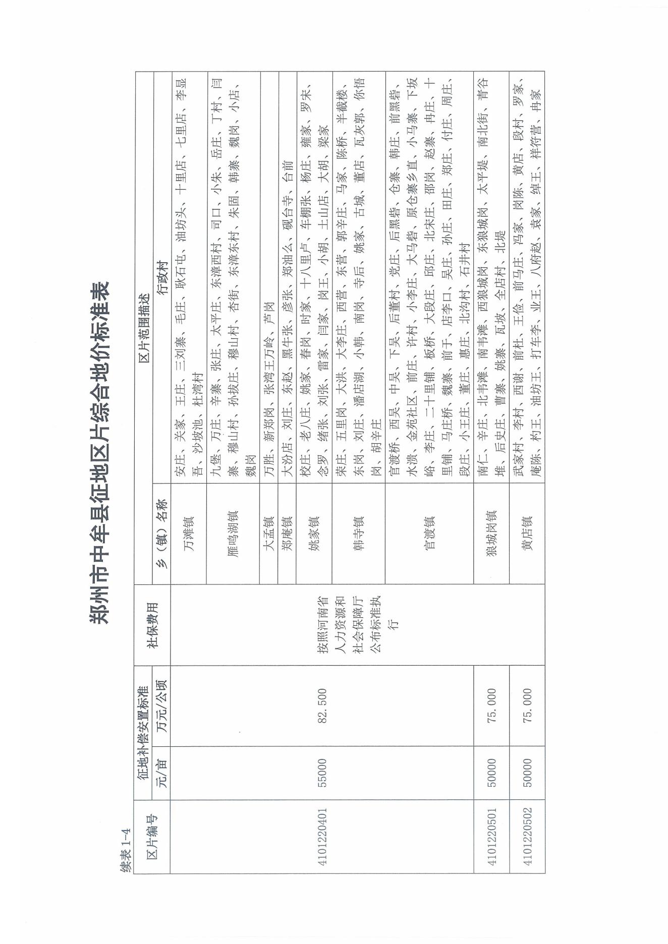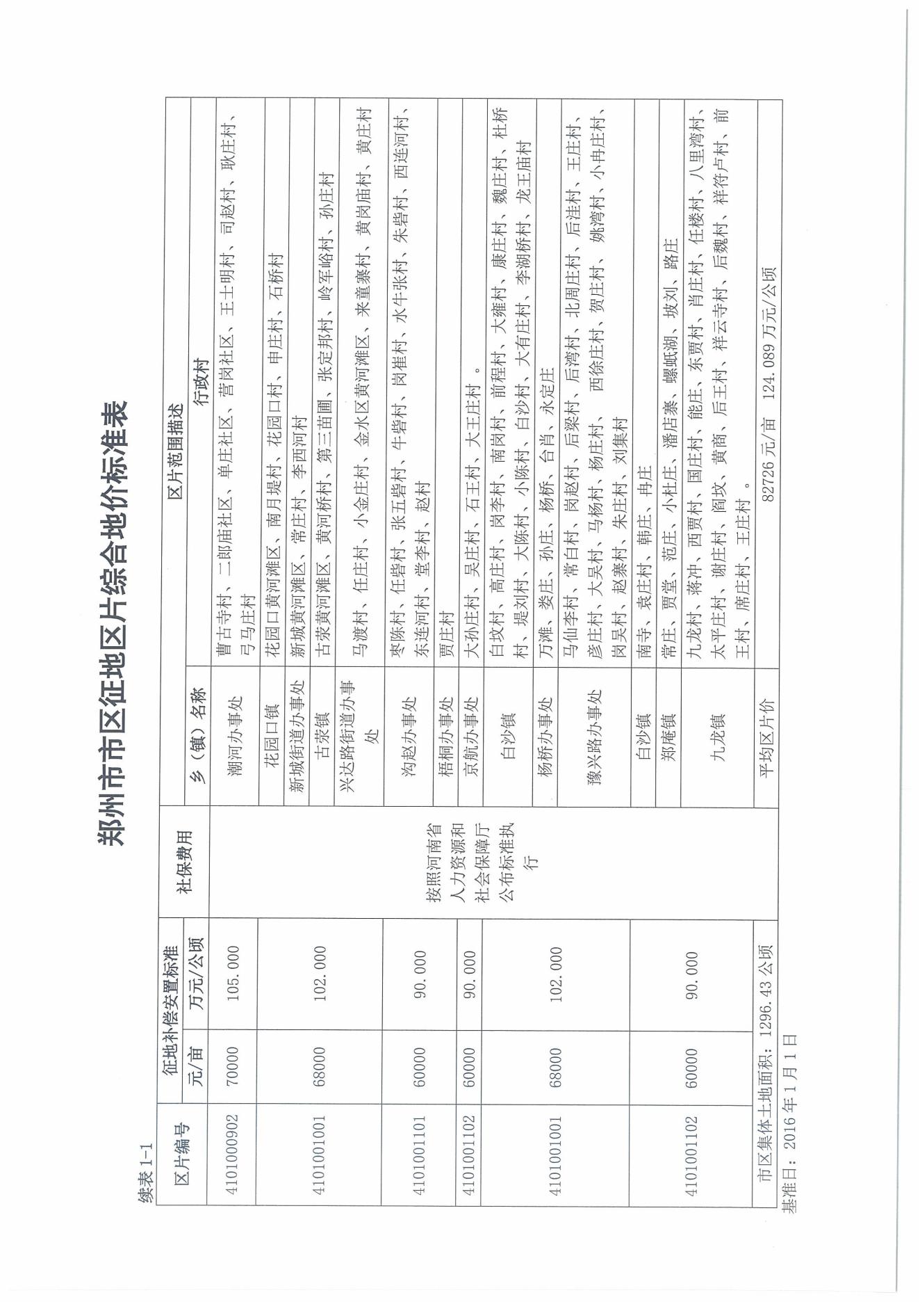 河南省人民政府关于农用地区片综合地价有关问题的通知