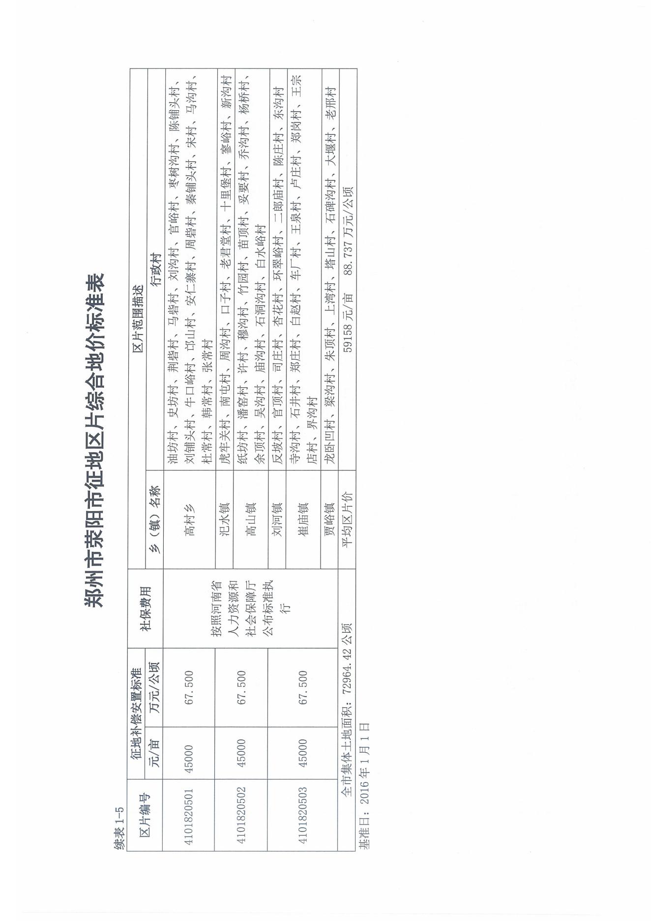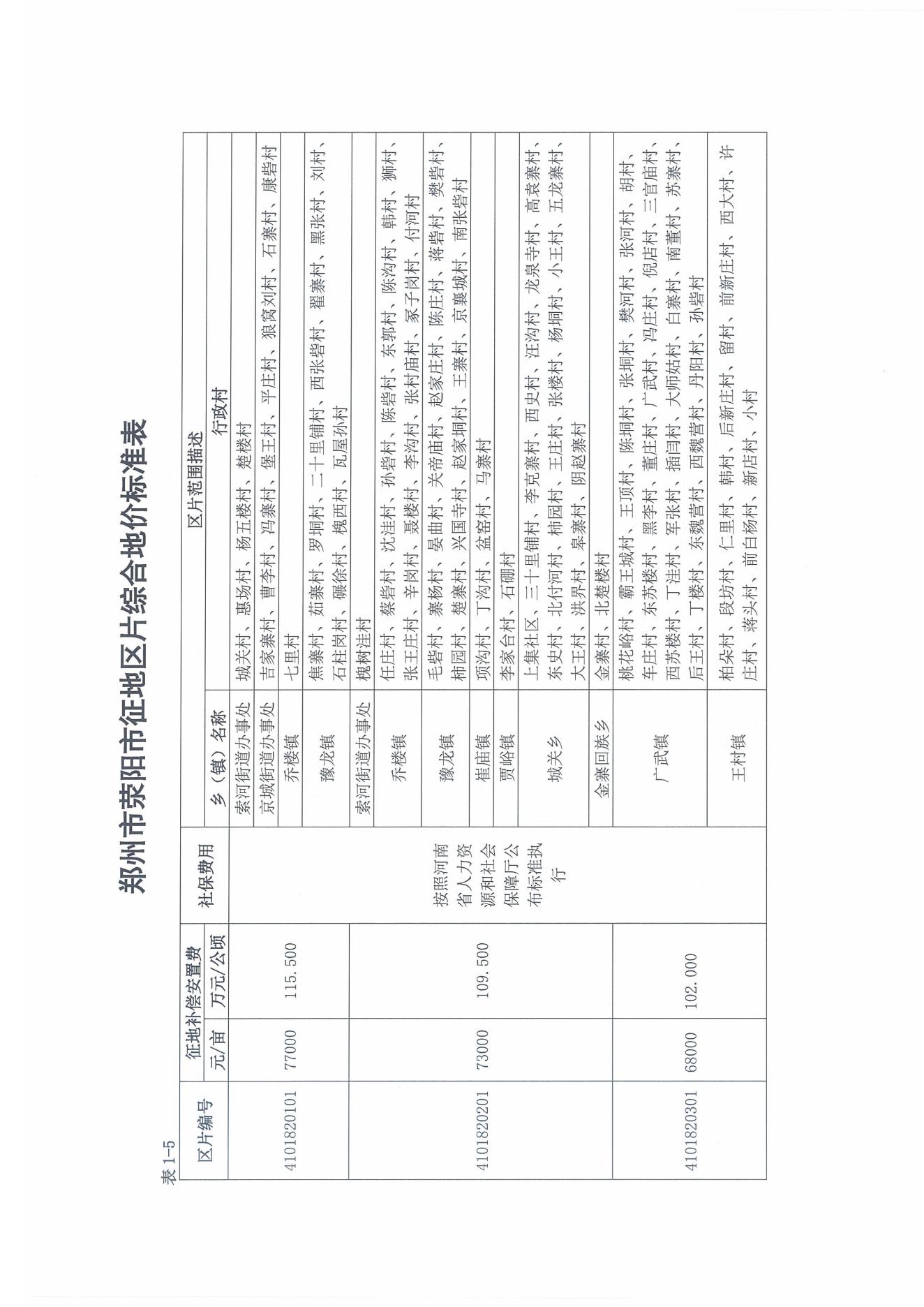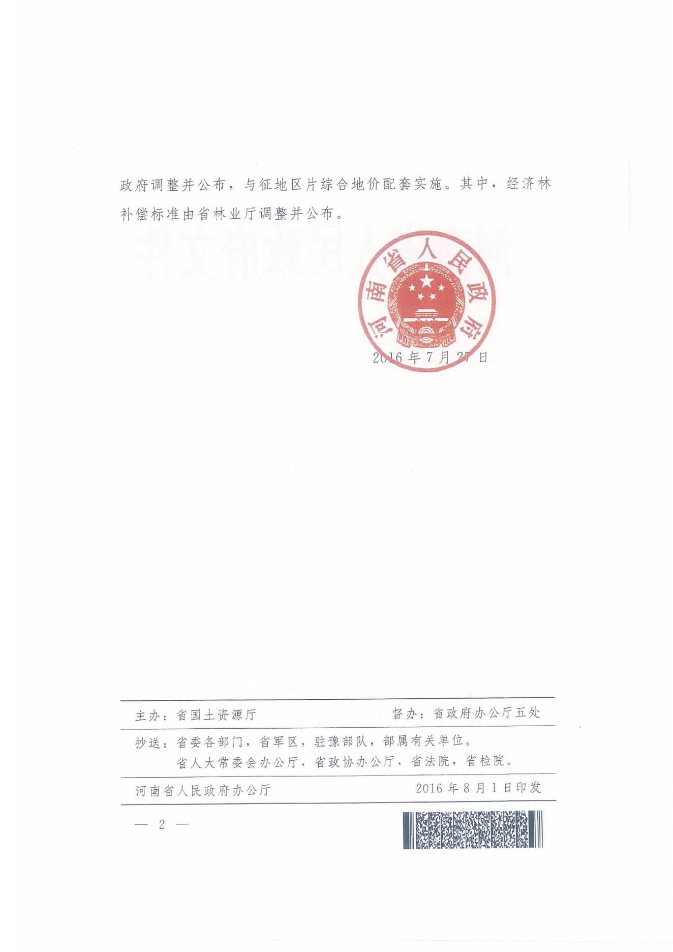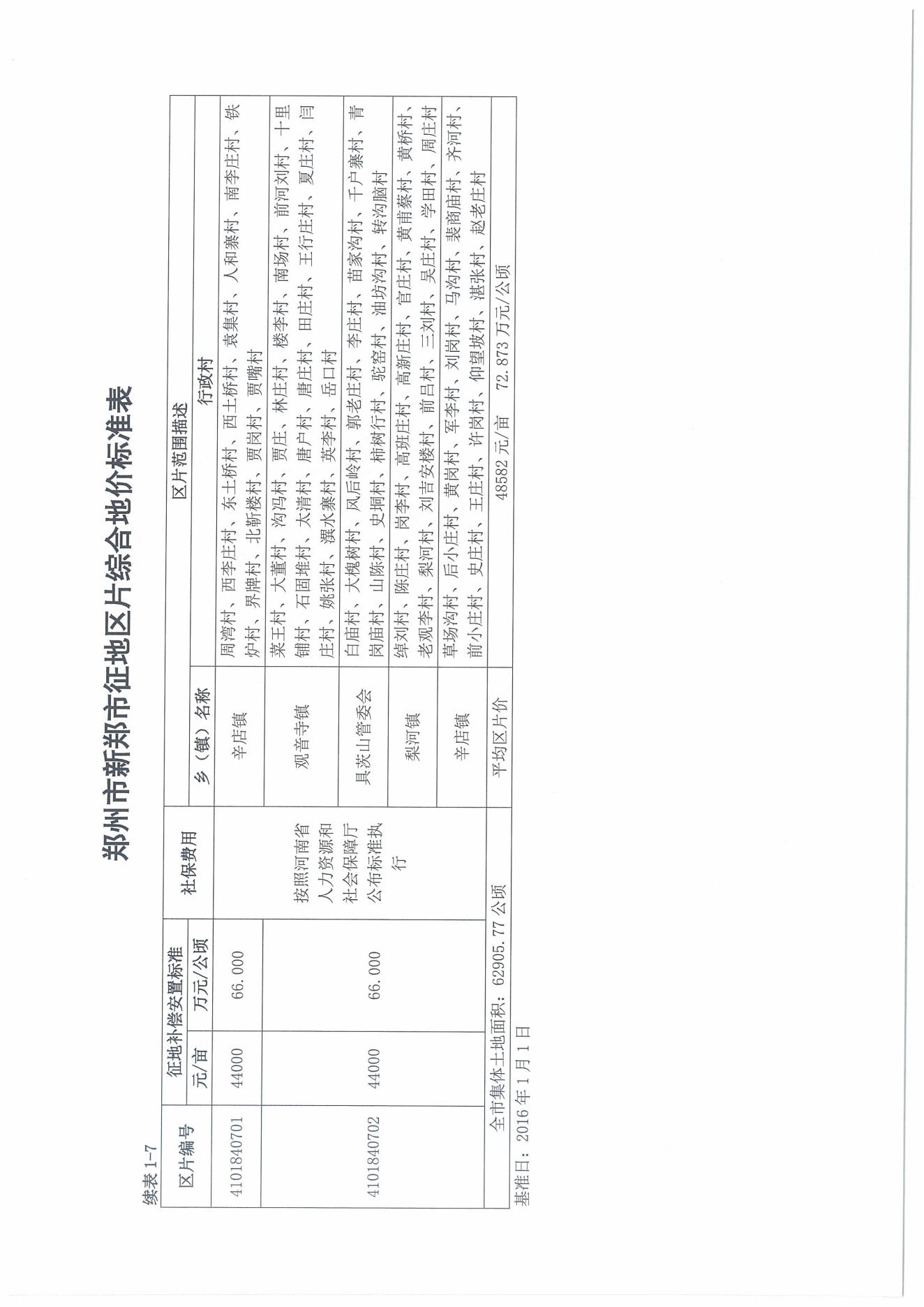 河南省人民政府关于农用地区片综合地价有关问题的通知