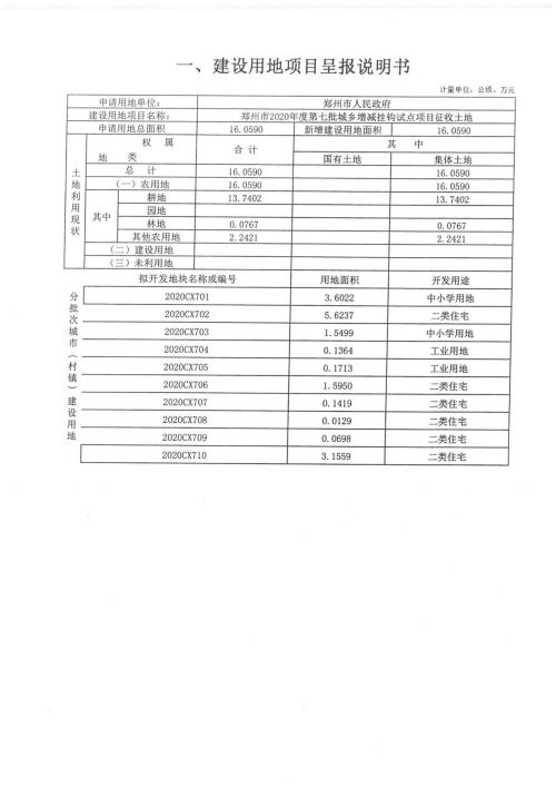 郑州市2020年度第七批城乡增减挂钩试点项目征收土地征地报批材料