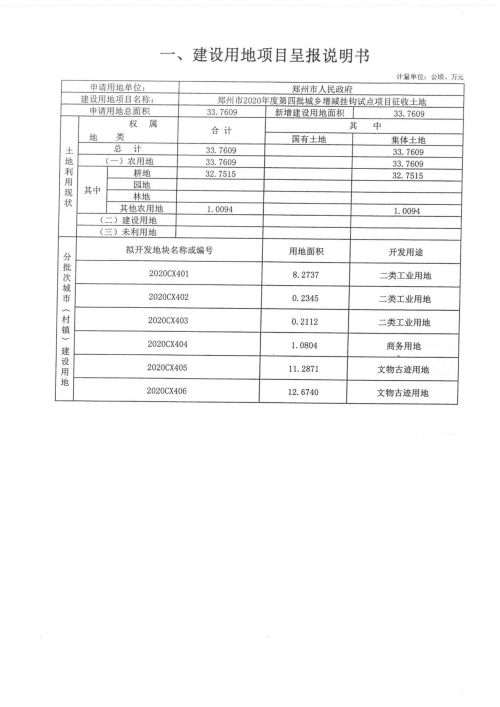 郑州市2020年度第四批城乡增减挂钩试点项目征收土地征地报批材料