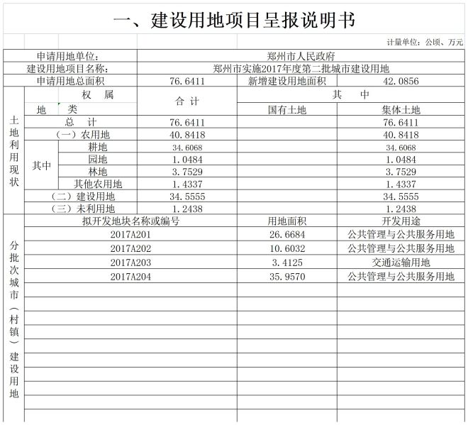 郑州市实施2017年度第二批城市建设用地征地报批材料