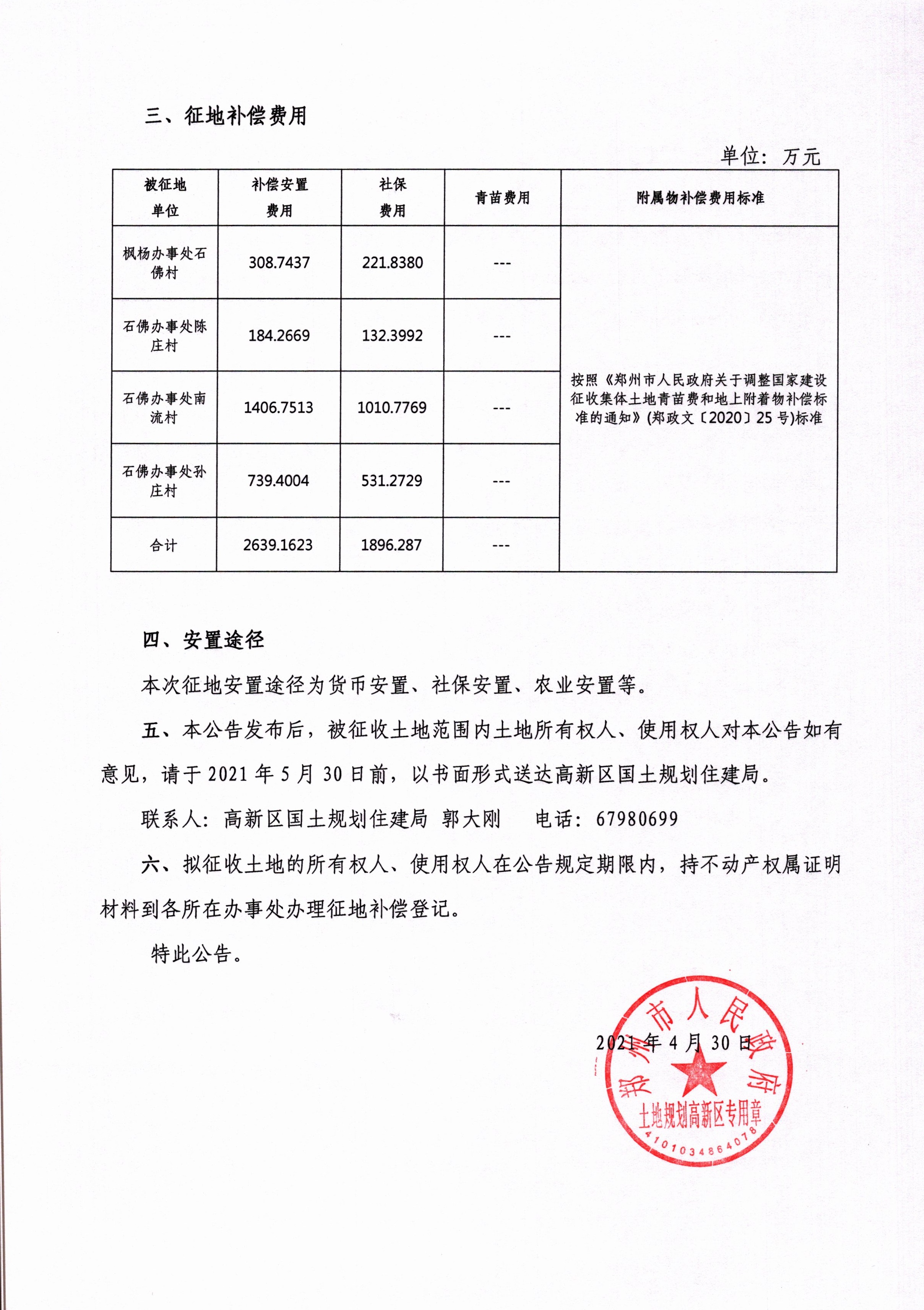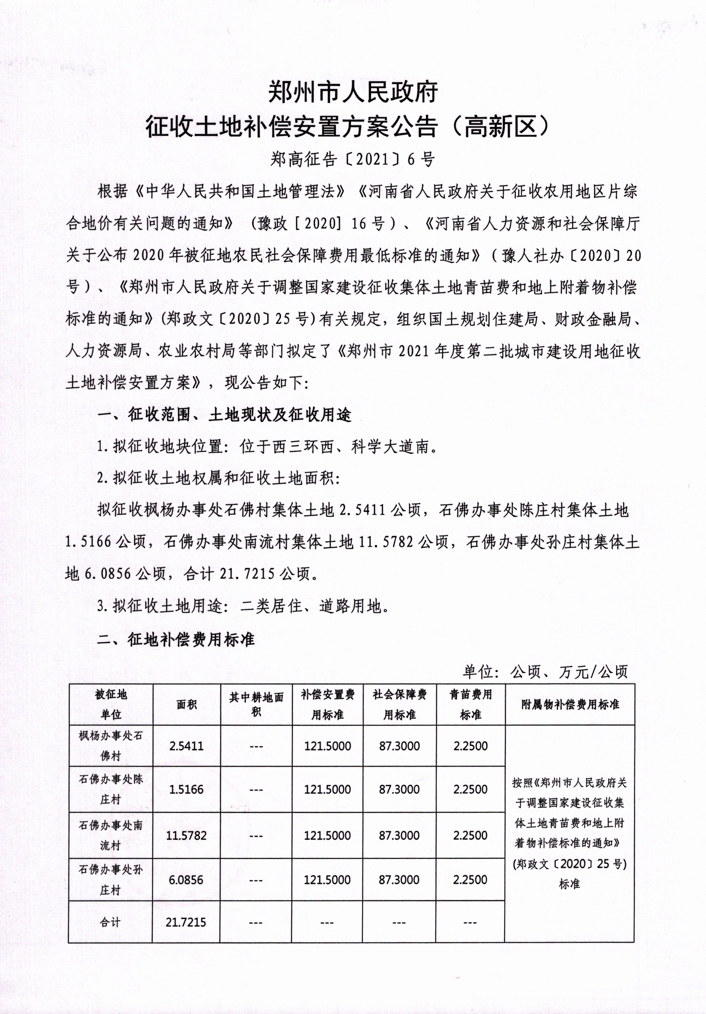 郑州市2021年度第二批城市建设用地补偿安置方案公告-1