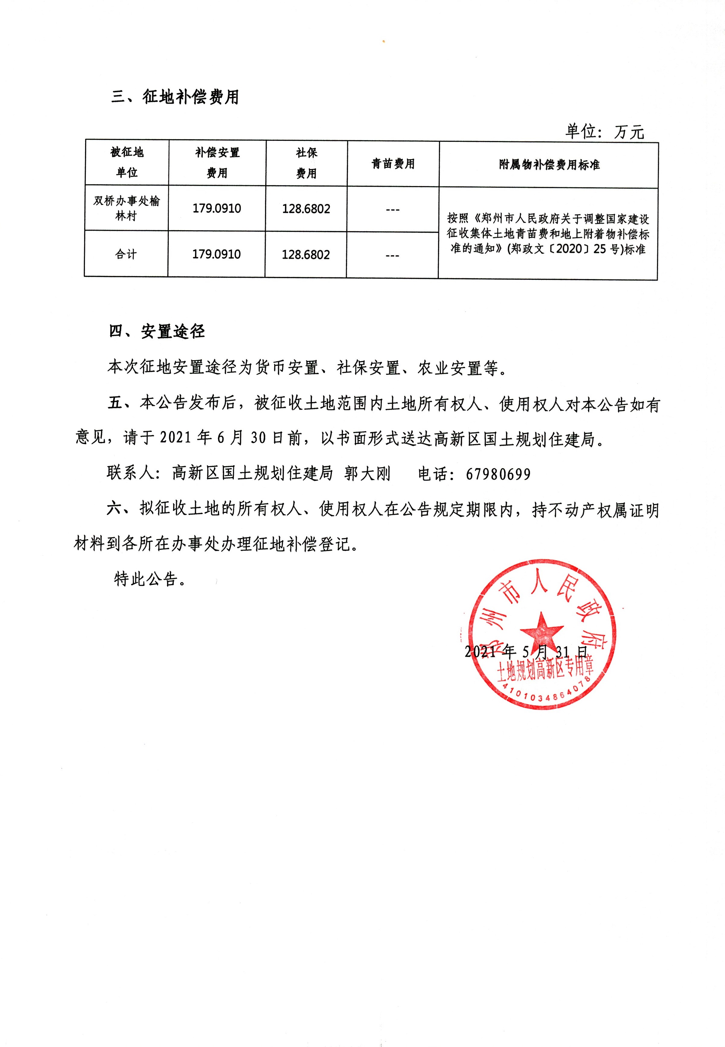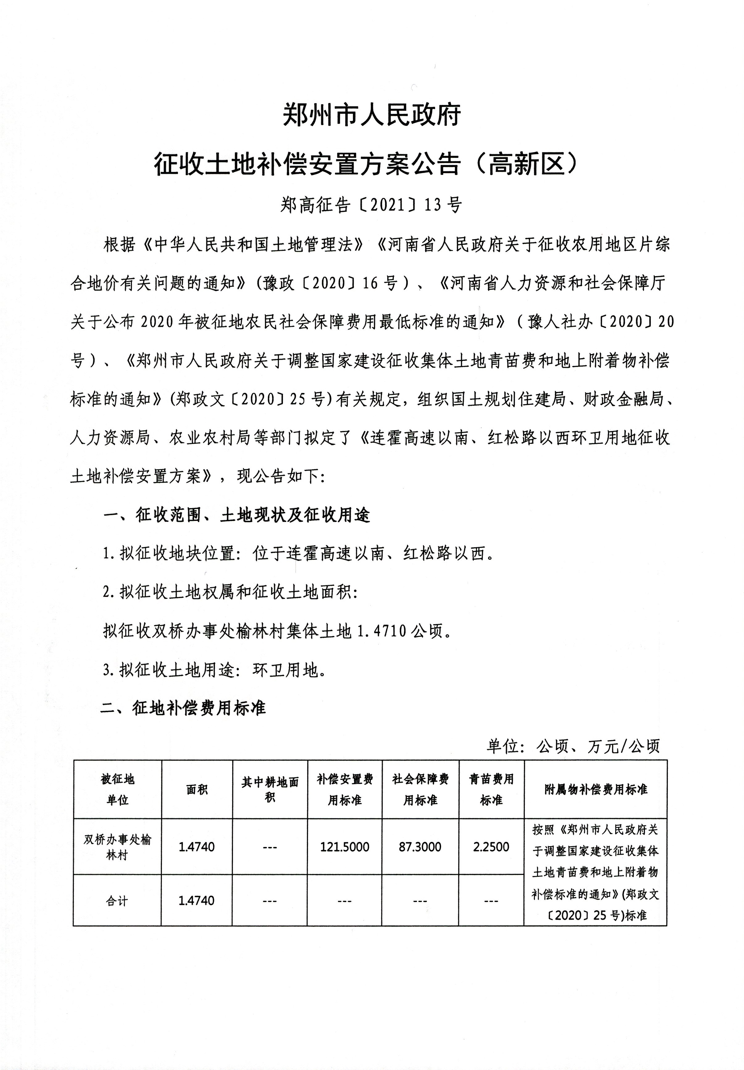 郑州市2021年度第九批乡镇建设征收土地补偿安置方案公告