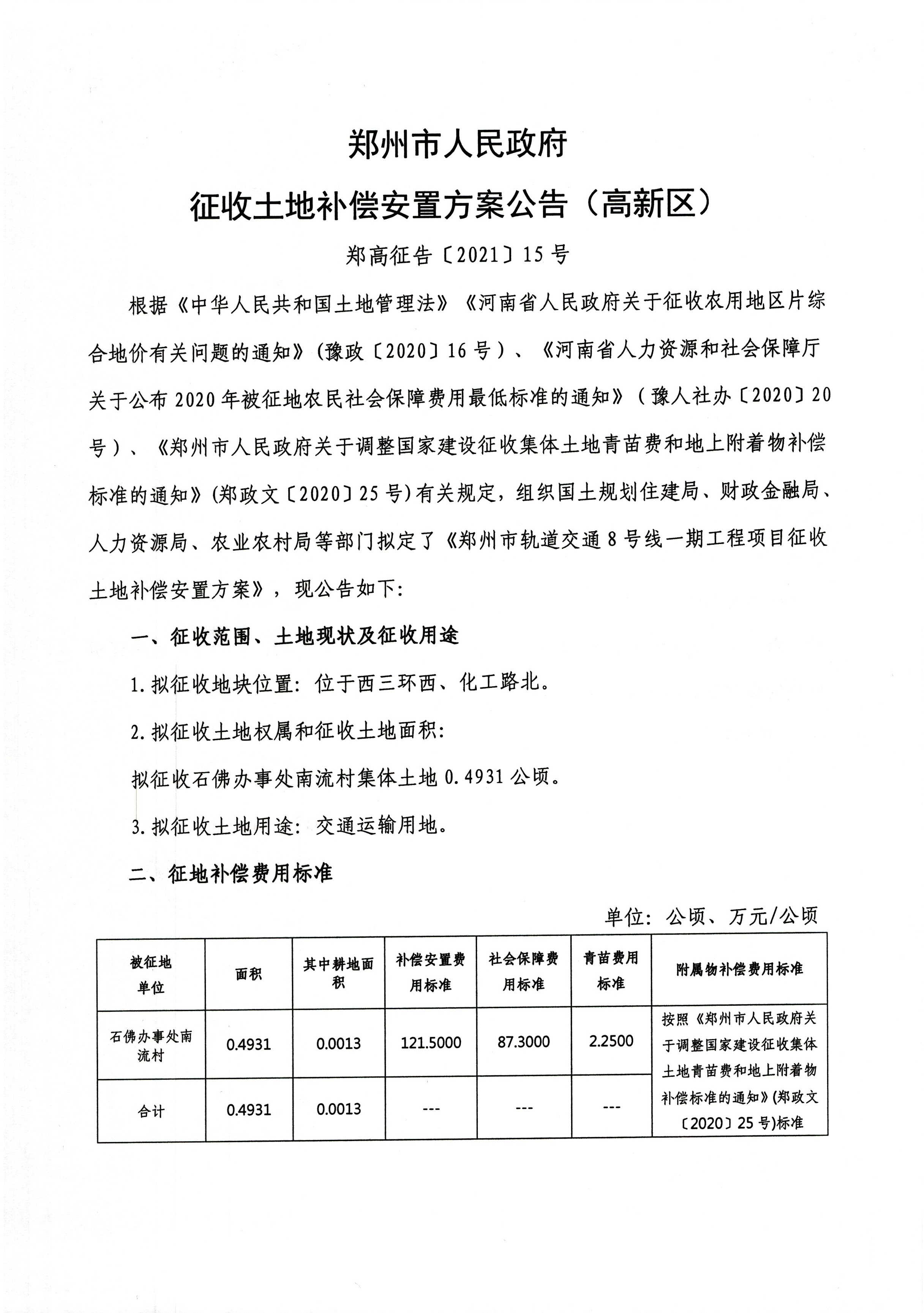 郑州市轨道交通8号线一期工程项目征收土地补偿安置方案公告-1