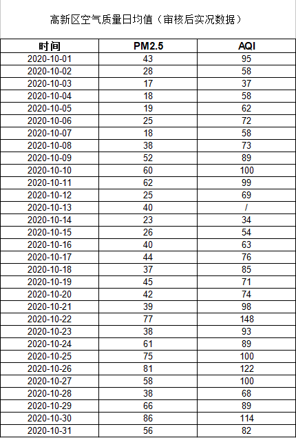 2020年10月份空气质量指数(AQI)和PM2.5浓度
