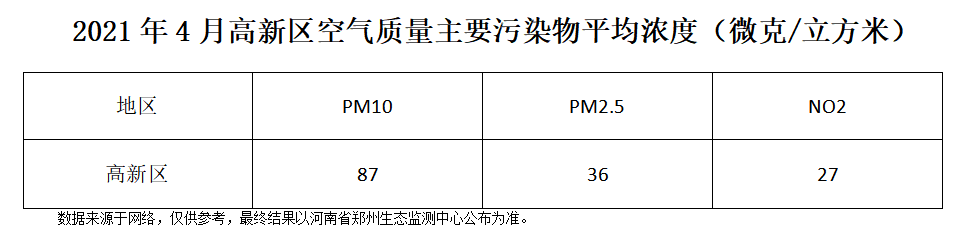 2022年4月高新区空气质量主要污染物平均浓度