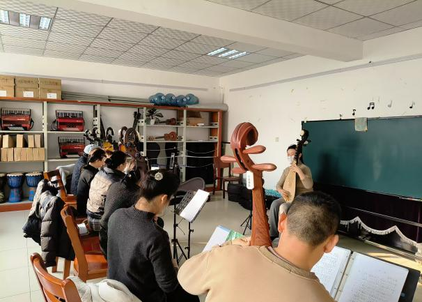 琵琶教室一隅,清脆的弦音错落交织,学员们在老师的悉心指导下拨弦弹奏,一步步叩响传统民乐的雅致大门;