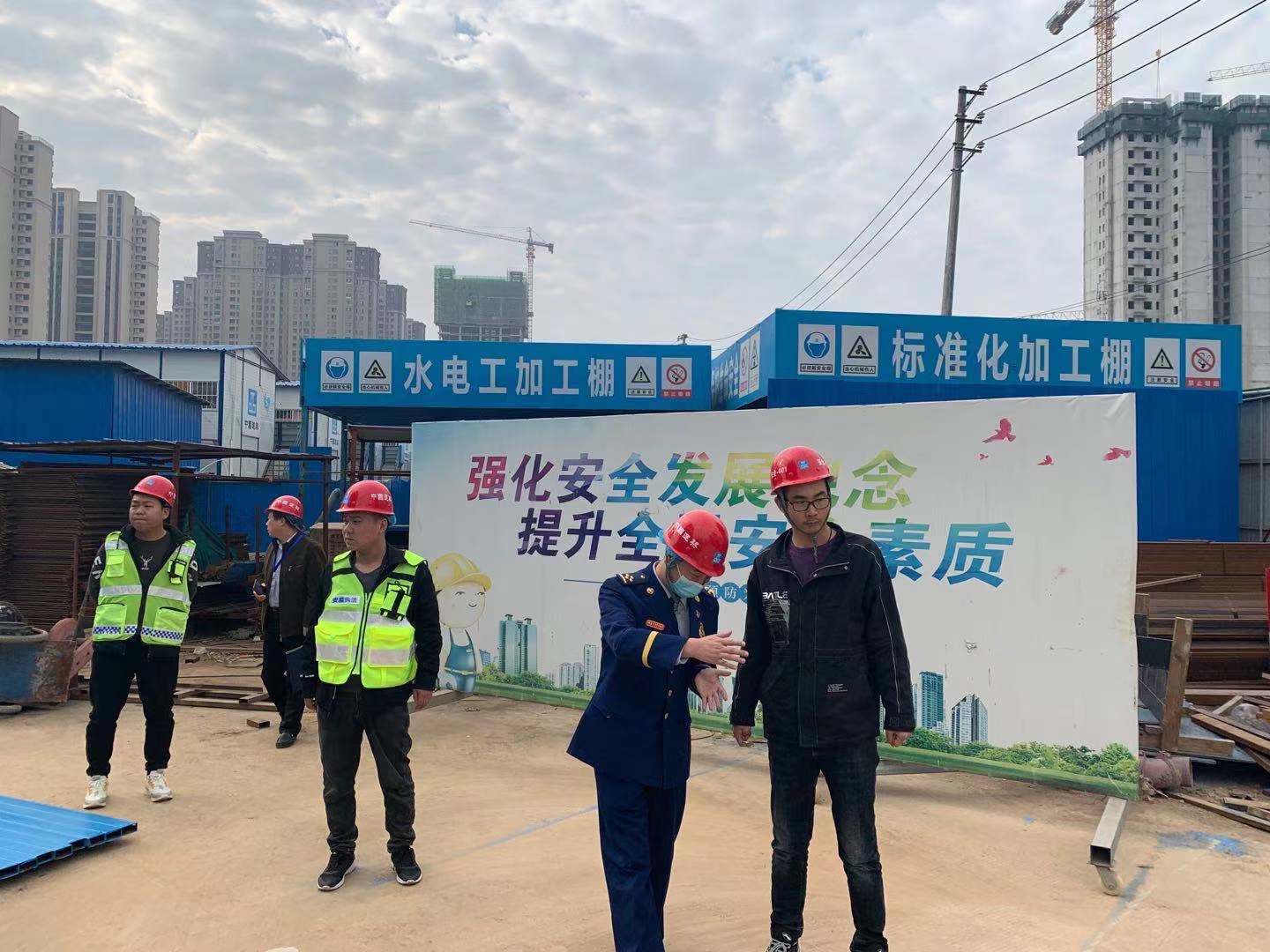 2020年11月11日,沟赵办事处环保安监科联合区消防救援大队对美的瀚悦府项目工地进行安全监督检查。