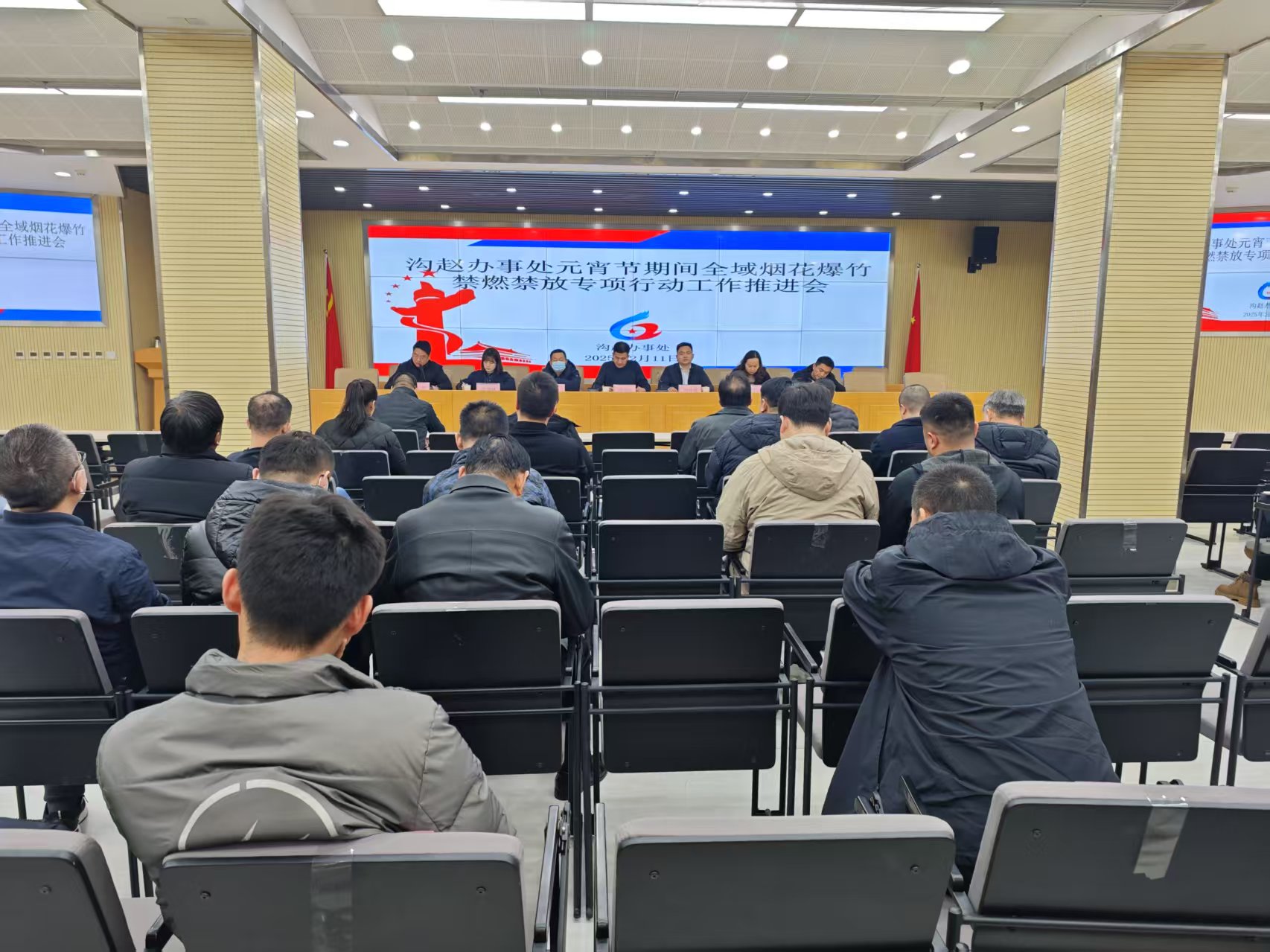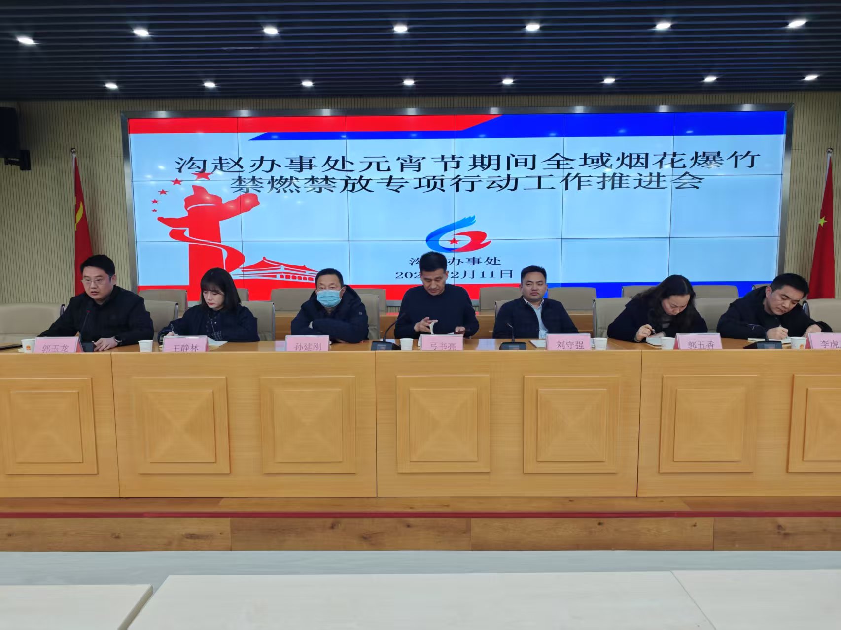 2025年2月11日下午,沟赵办事处组织召开元宵节期间全域烟花爆竹禁燃禁放专项行动工作推进会。首先,郭玉龙主任传达了市区两级关于元宵节期间烟花爆竹禁燃禁放相关文件精神,随后办事处党工委副书记、办事处主任刘守强同志对办事处元宵节期间烟花爆竹禁燃禁放工作、大气污染防治攻坚工作进行再部署再安排,最后办事处党工委书记弓书亮同志对以上工作提出具体要求,一是加强宣传指导,提升公众意识。通过“线上+线下”双渠道开展全覆盖宣传,利用电子显示屏、广播喇叭、微信群等方式,广泛宣传元宵节期间烟花爆竹禁燃禁放规定,做到家喻户晓、人人皆知。二是聚焦重点领域,持续抓好协同管控。积极开展联合执法行动,在重要时段,对天健湖、星光广场、办事处站点周边等重要领域加大巡查力度,对违规燃放行为及时劝阻并依法处置,形成高压震慑态势。三是层层压实工作责任,坚决守住底线。切实增强做好烟花爆竹管控和大气污染防治工作的责任感和紧迫感,以钉钉子精神坚决落实好烟花爆竹禁限放管理及大气污染防治攻坚各项工作要求,坚决打赢大气污染防治攻坚战。