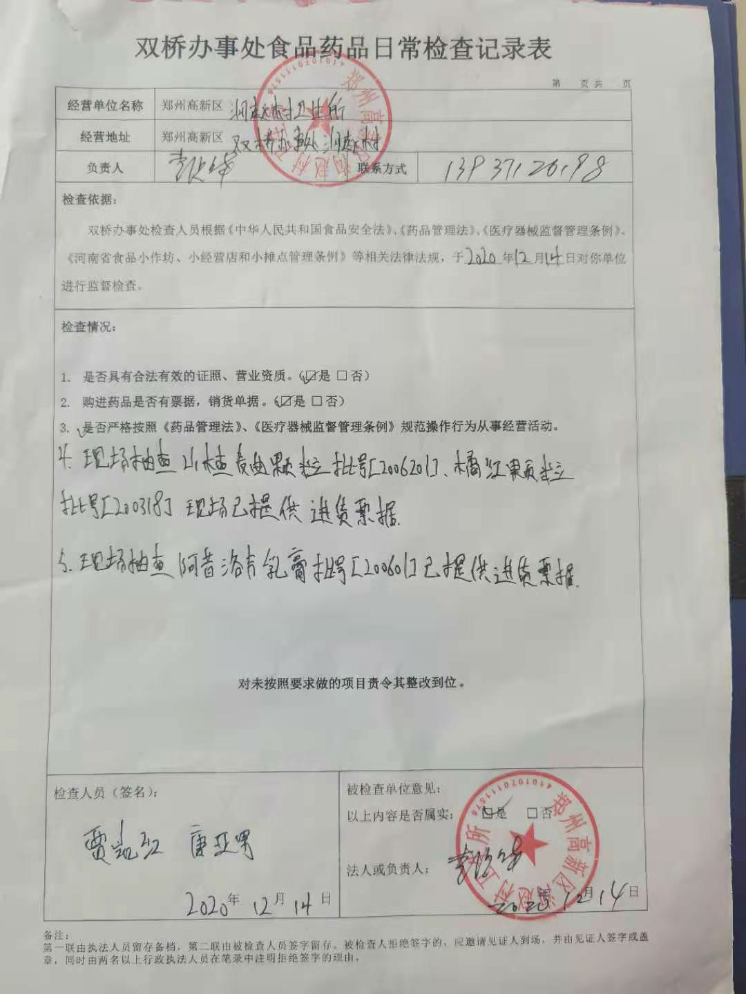双桥办事处对沟赵村卫生所进行药品安全检查