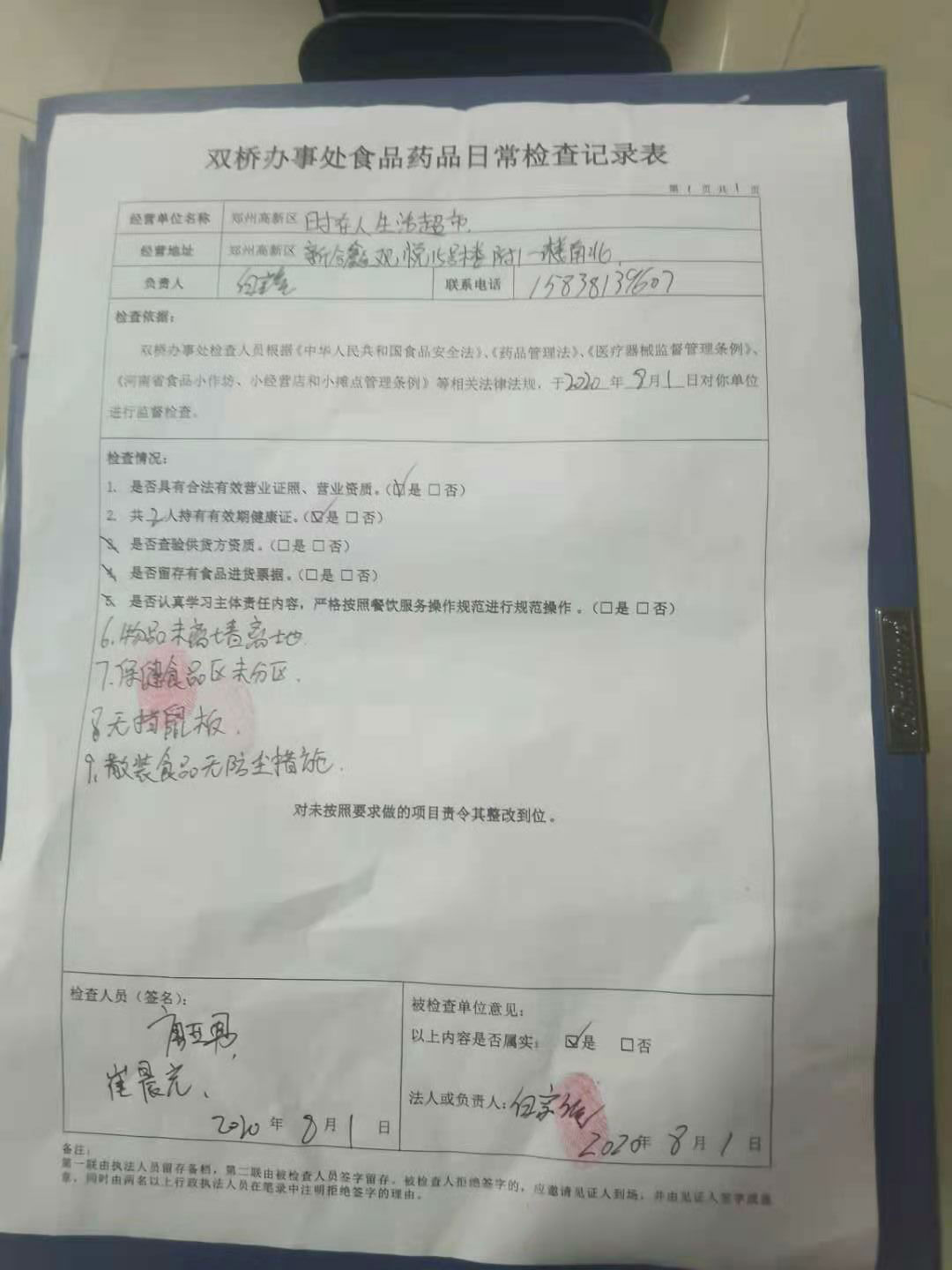 双桥办事处对新郑州市高新区时在人生活超市进行食品安全大检查